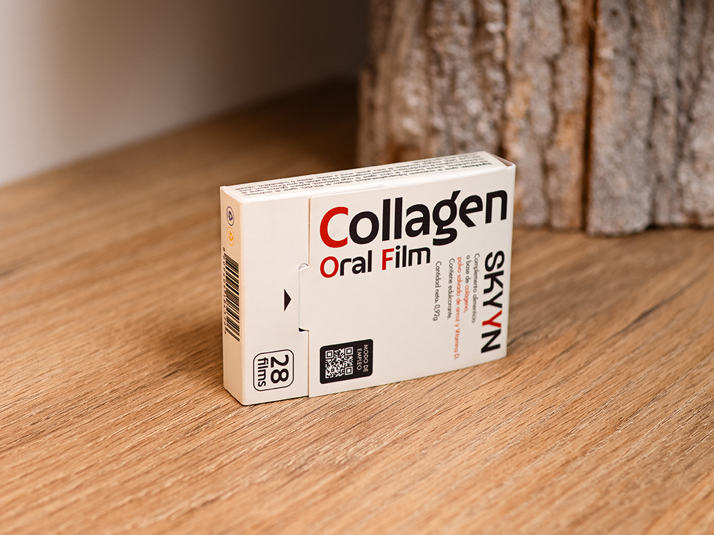 Es una película oral delgada que se introduce en la cara interior de la mejilla y libera péptidos de colágeno, permitiendo una absorción rápida y eficiente.